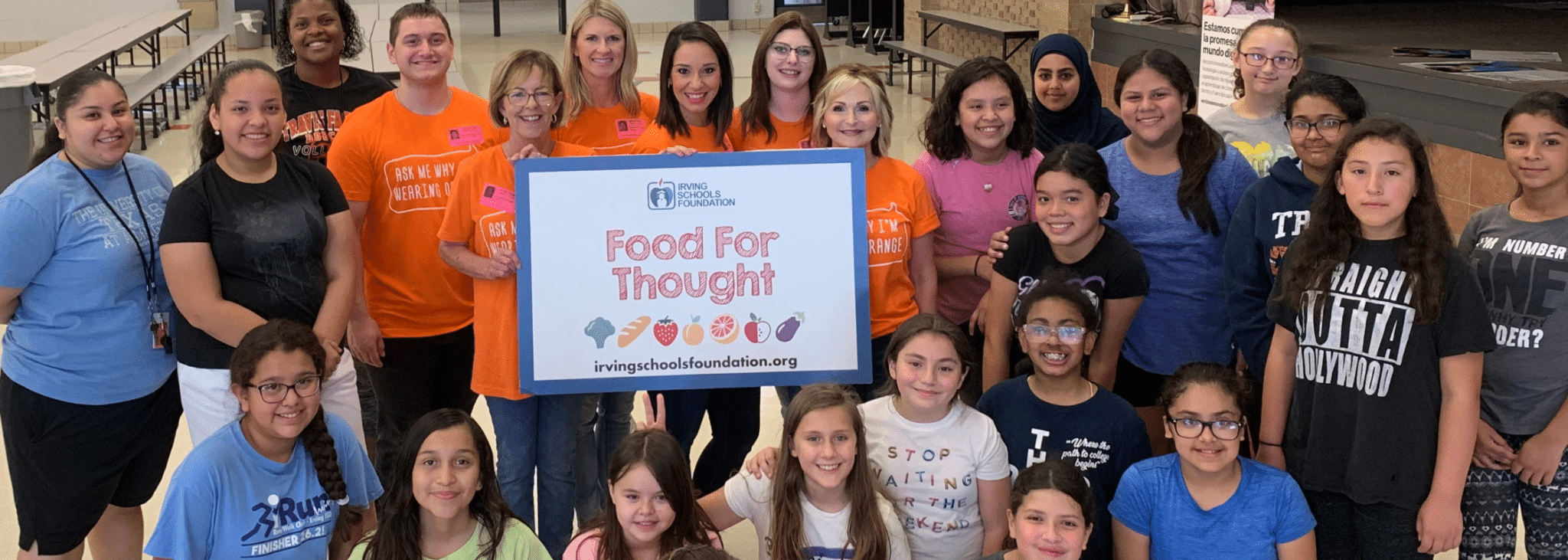 Your organization can host a food drive, host an off-site “bag build”, volunteer as a group to assemble bags at an Irving ISD campus, or adopt a school for ongoing Food for Thought support.